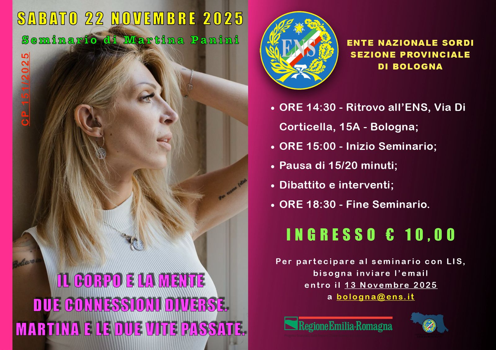 La ringraziamo per la sua disponibilità e ci auguriamo che questo sia l’inizio di un percorso ricco e produttivo per tutti i giovani sordi bolognesi, al fine di costituire ufficialmente il Comitato Giovani Sordi Italiani anche per la nostra Sezione.