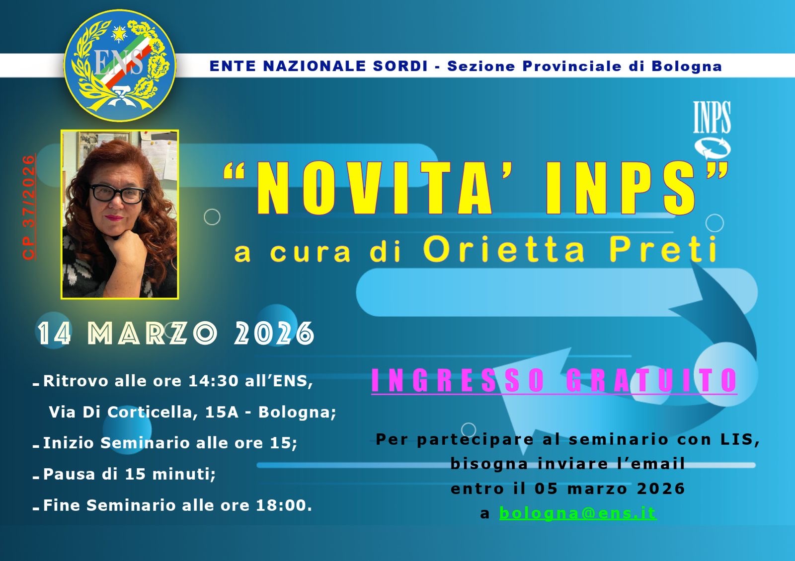 La ringraziamo per la sua disponibilità e ci auguriamo che questo sia l’inizio di un percorso ricco e produttivo per tutti i giovani sordi bolognesi, al fine di costituire ufficialmente il Comitato Giovani Sordi Italiani anche per la nostra Sezione.